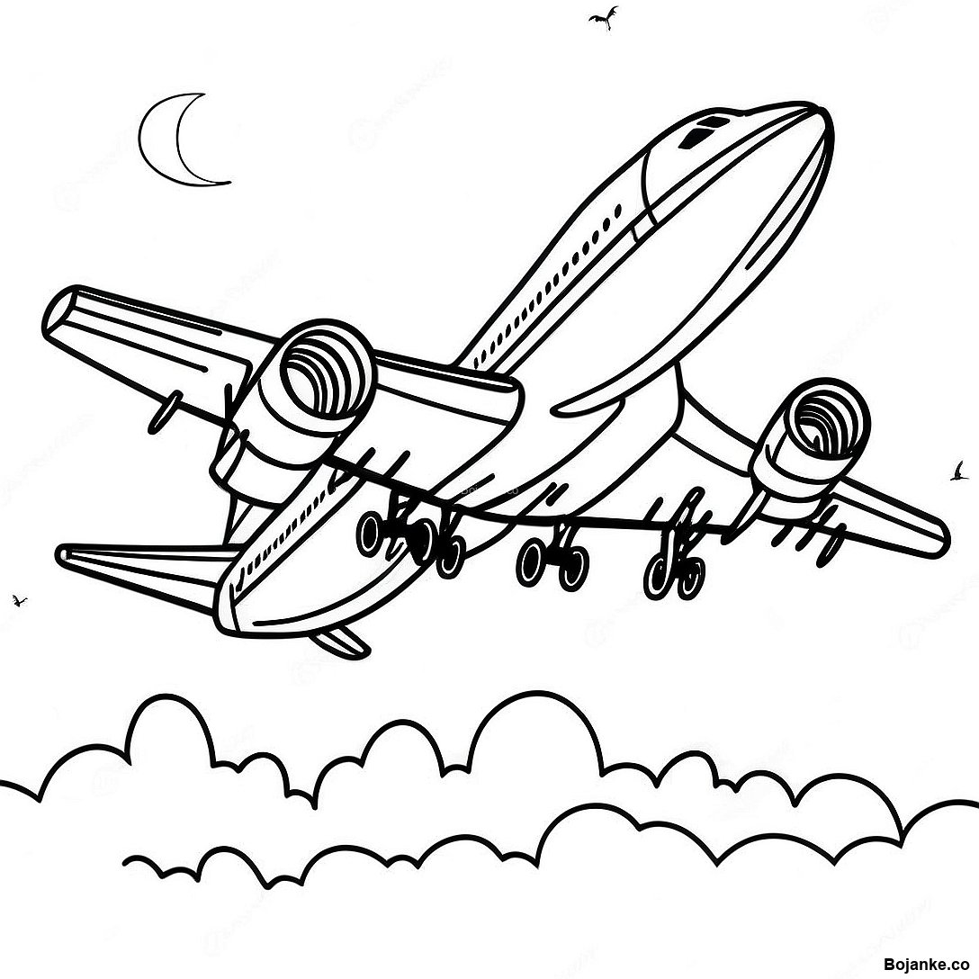 Шарени млазни авион у небу - бојанка