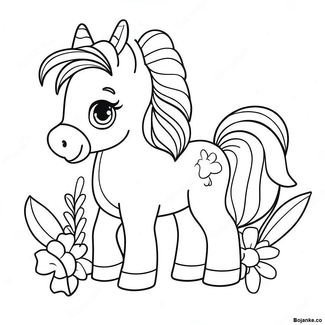 Preuzmi verziju za štampu Bojanka Sa Pahuljastim Bebom Konjićem I Cvećem u PDF formatu