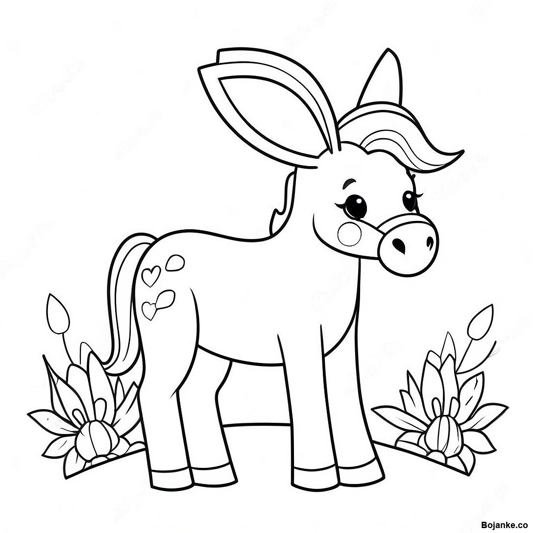 Preuzmi verziju za štampu Bojanka Sa Slatkim Magarcem Sa Cvećem u PDF formatu