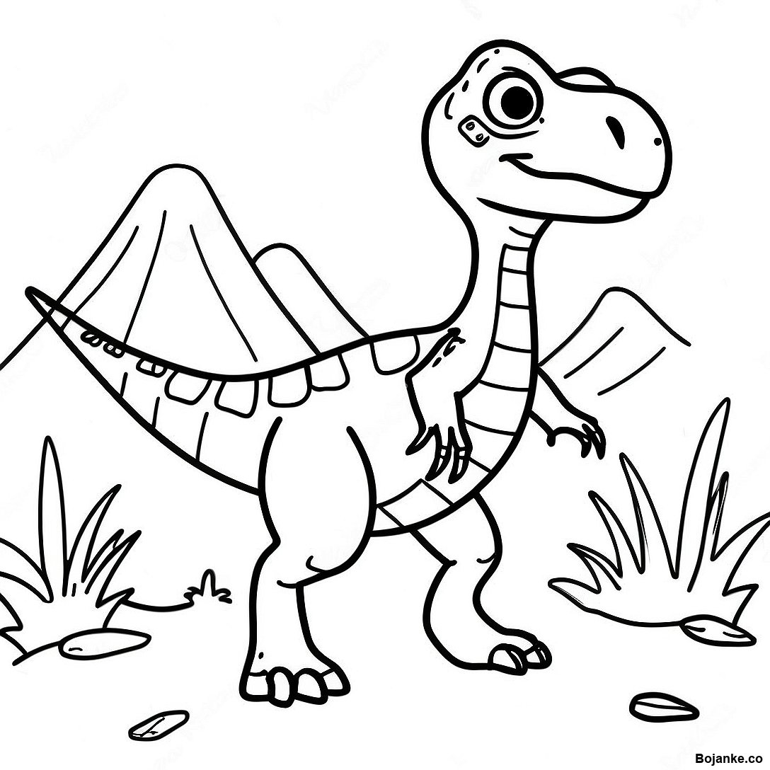Srećni T-Rex se igra sa prijateljima - bojanka