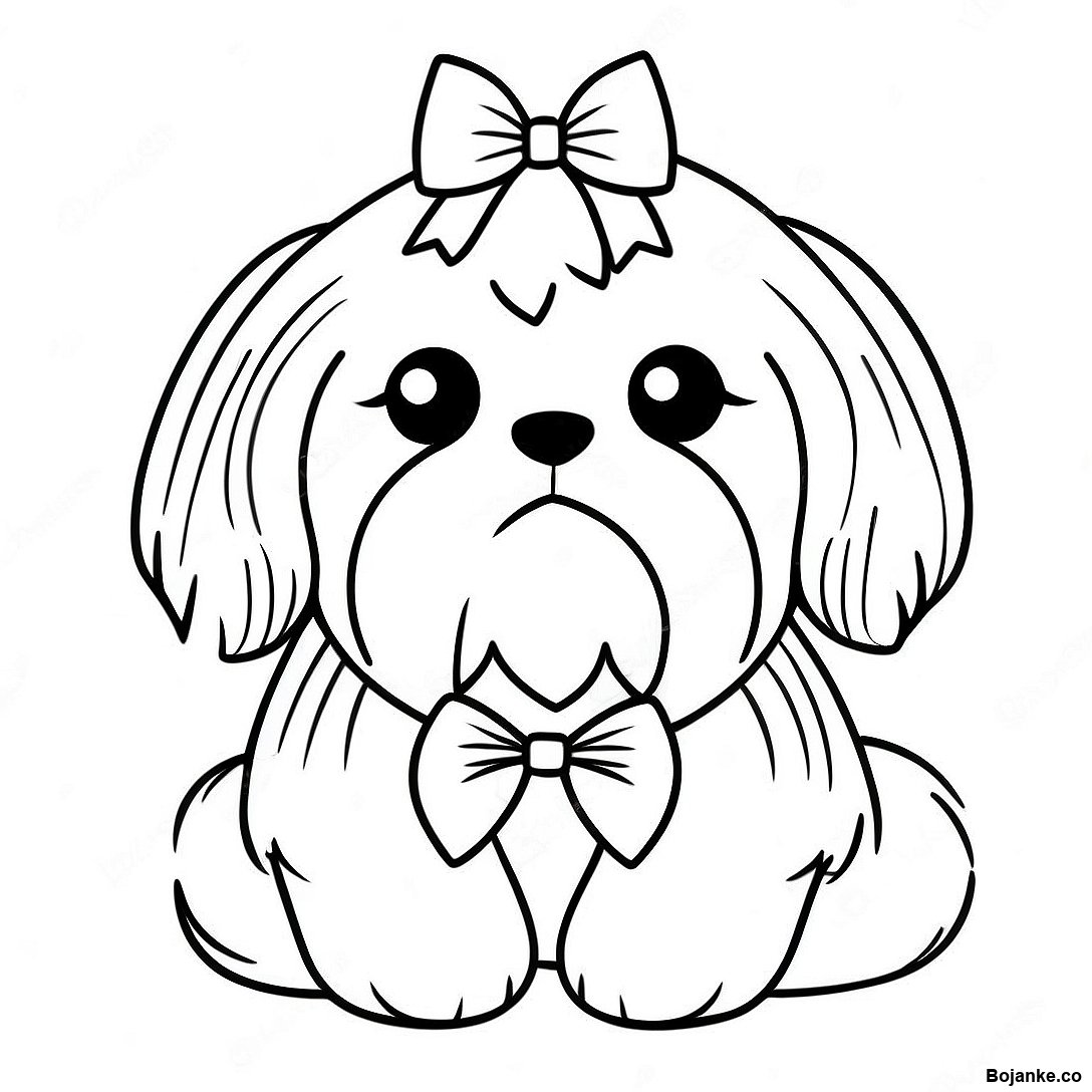 Preuzmi verziju za štampu Bojanka Za Pahuljastog Ših Tzu Sa Mašnom u PDF formatu