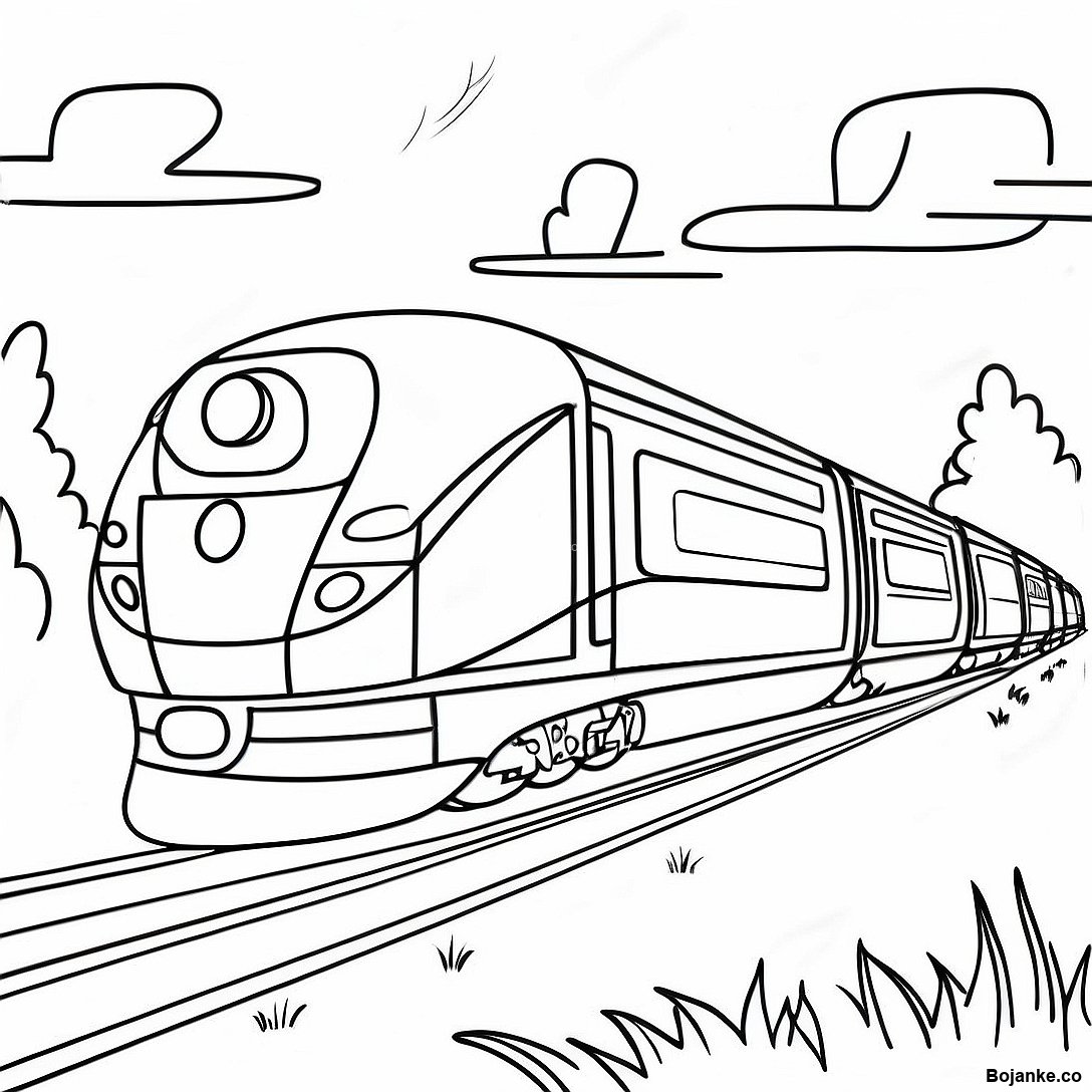 Preuzmi verziju za štampu Brzi Voz Na Stranici Za Bojanje Kroz Prirodu u PDF formatu