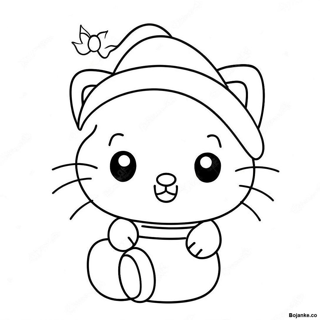 Preuzmi verziju za štampu Festivna Hello Kitty Sa Kapom Deda Mraza - Bojanka u PDF formatu
