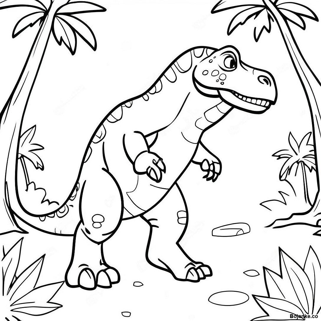 Srećni T-Rex se igra sa prijateljima - bojanka