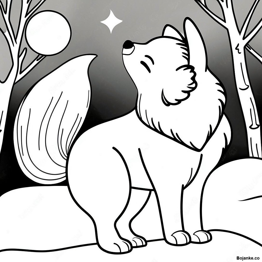 Impozantna Arkticka Lisica Koja Zavija Na Mesecu Za Bojanje 131824 64478
