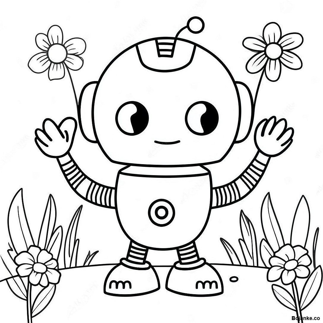 Prijateljski Robot Sa Cvecem Za Bojanje