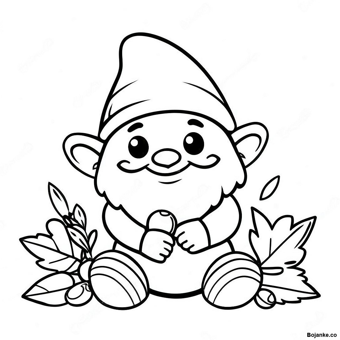 Razigrani Jesenji Patuljak Sa Žirevima - Bojanka