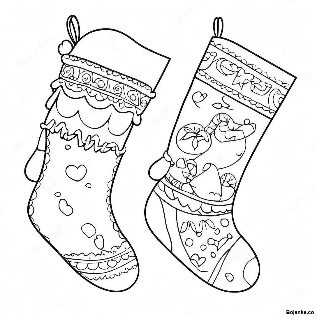 Preuzmi verziju za štampu Šarene Božićne Čarape Sa Ukrasima - Bojanka u PDF formatu