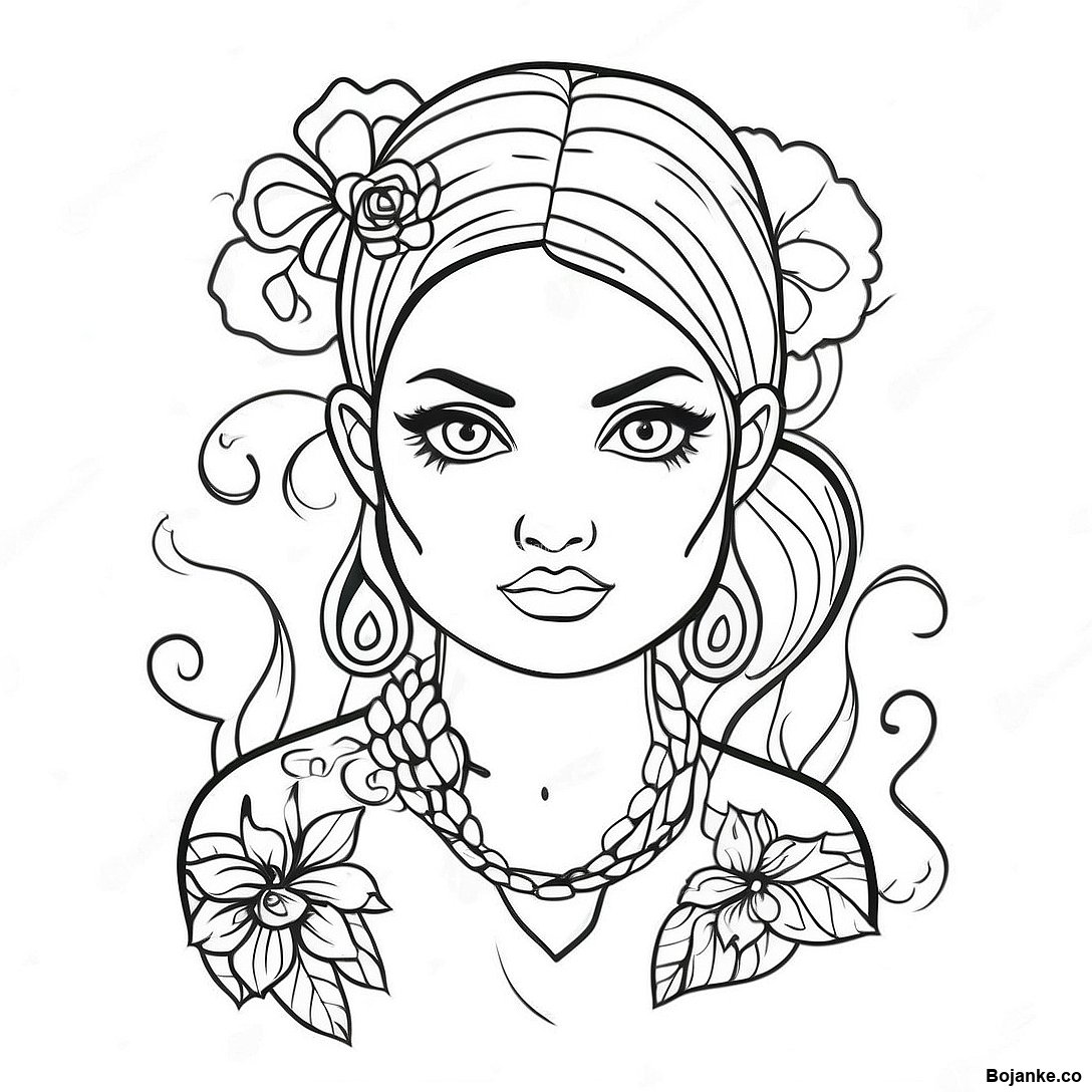 Preuzmi verziju za štampu Sassy Bad Girl Sa Cvetnim Tetovažama Za Bojanje u PDF formatu