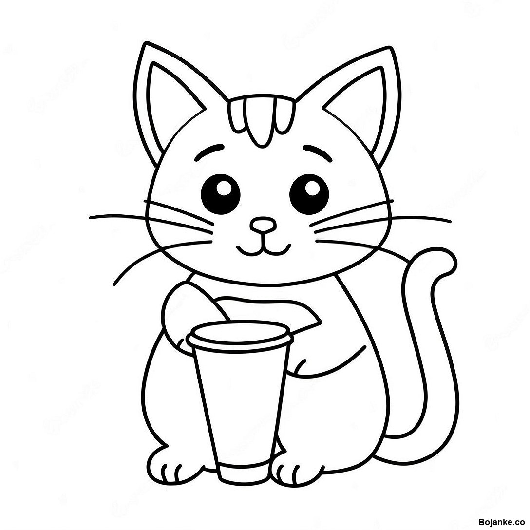 Preuzmi verziju za štampu Slatka Mačka Sa Šoljom Kafe - Bojanka u PDF formatu