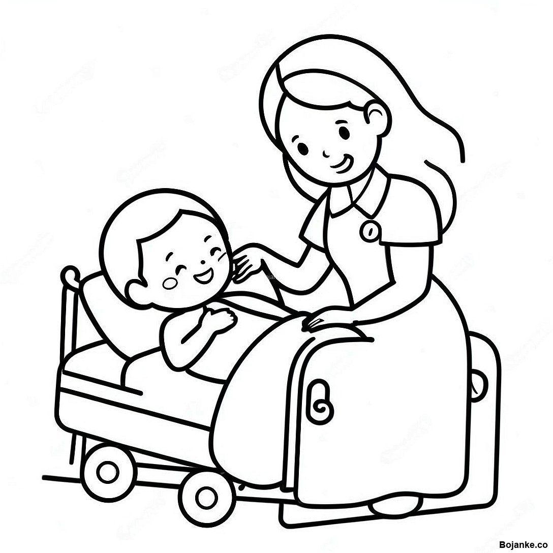Bojanka za veselu medicinsku sestru koja pomaže pacijentu