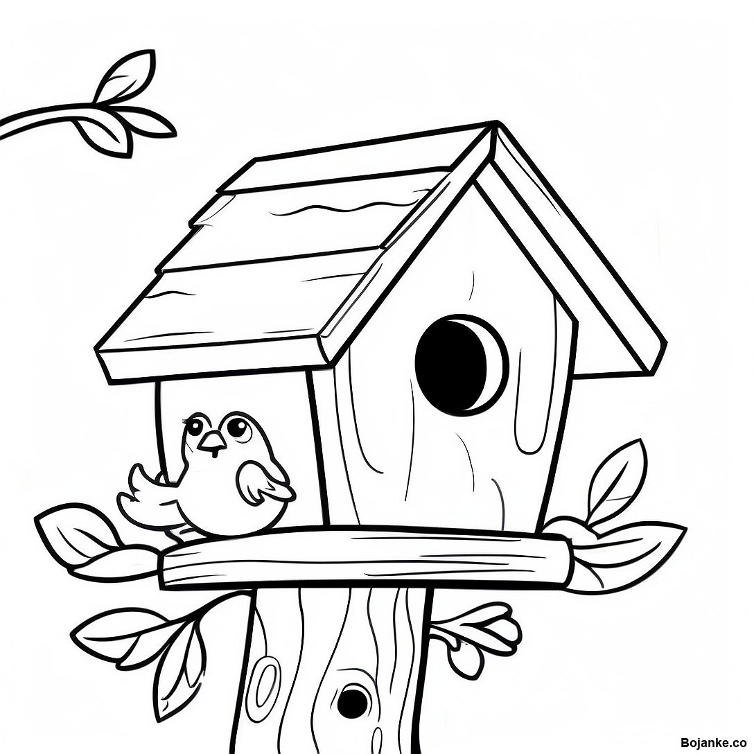 Preuzmi verziju za štampu Slatka Ptičja Kućica Na Drvetu - Bojanka u PDF formatu