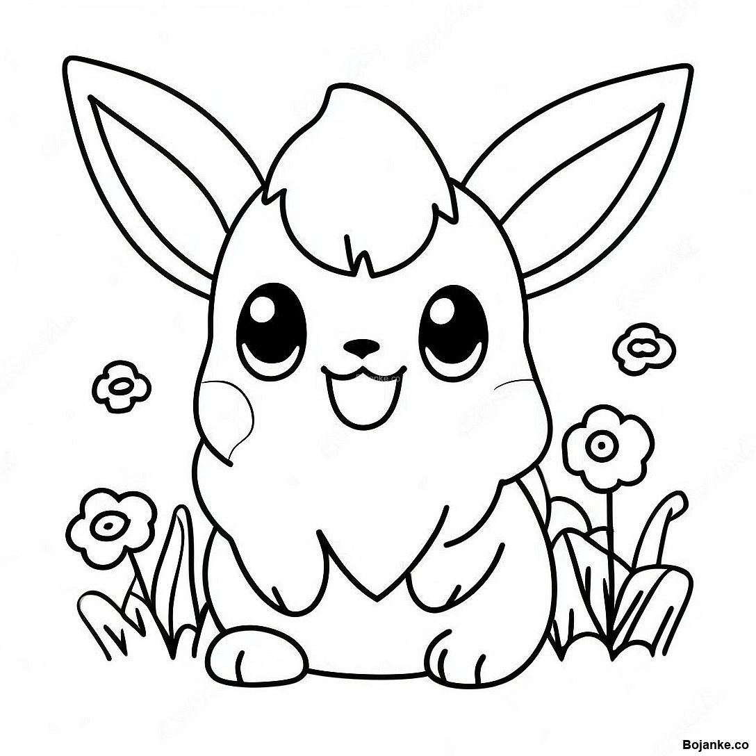 Preuzmi verziju za štampu Slatki Eevee Sa Cvećem - Bojanka u PDF formatu