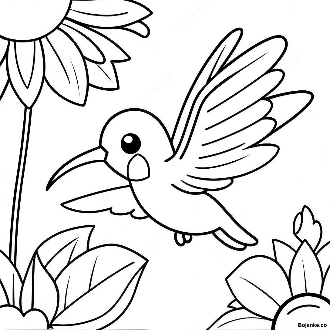Preuzmi verziju za štampu Slatki Kolibri Koji Lebdi Pored Cveća Bojanka u PDF formatu