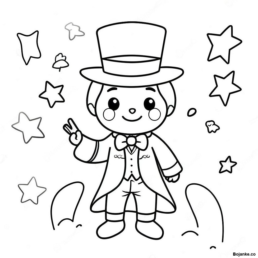 Slatki Mađioničar Sa Zvezdastom Pozadinom - Bojanka