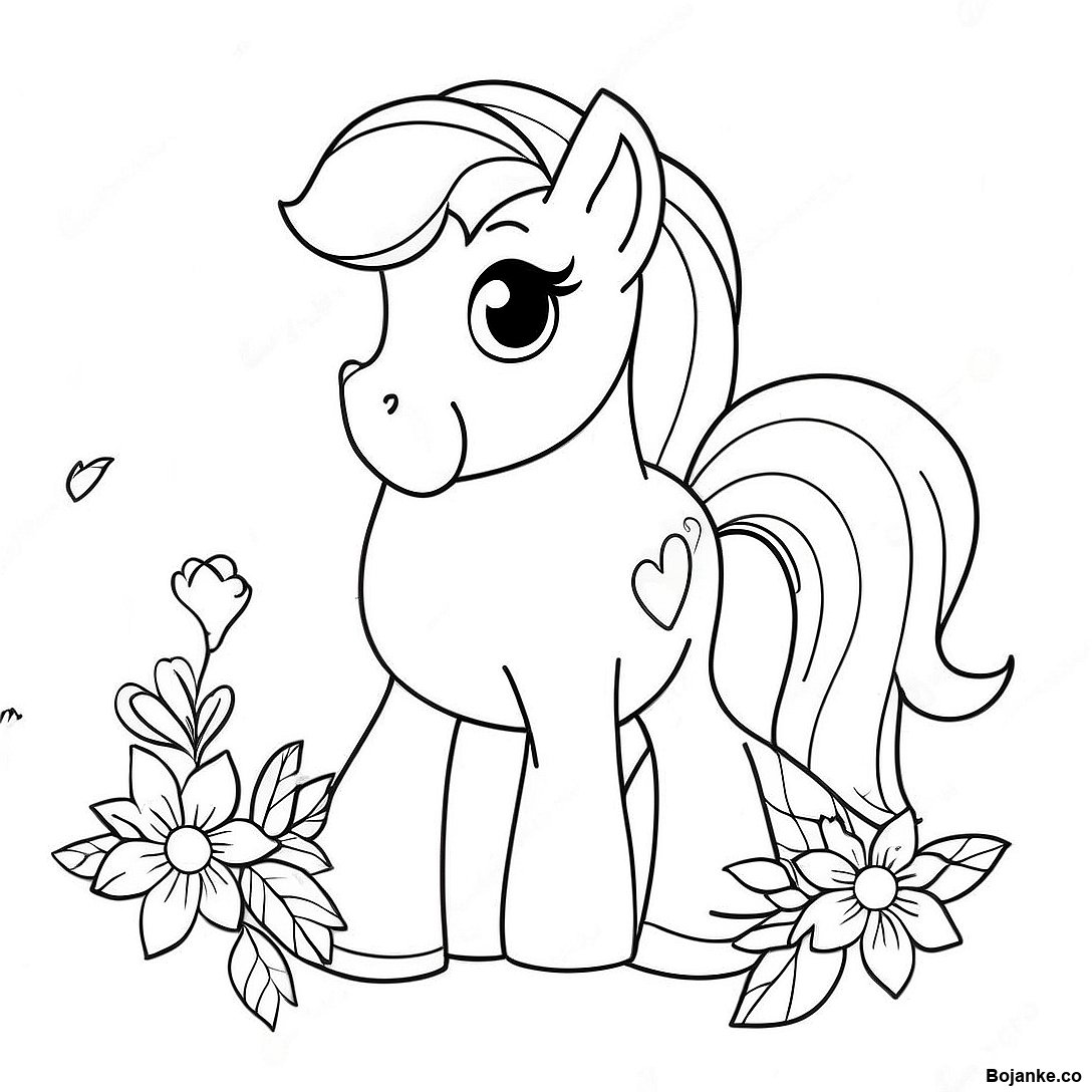 Preuzmi verziju za štampu Slatki Pony Sa Cvećem Bojanka u PDF formatu