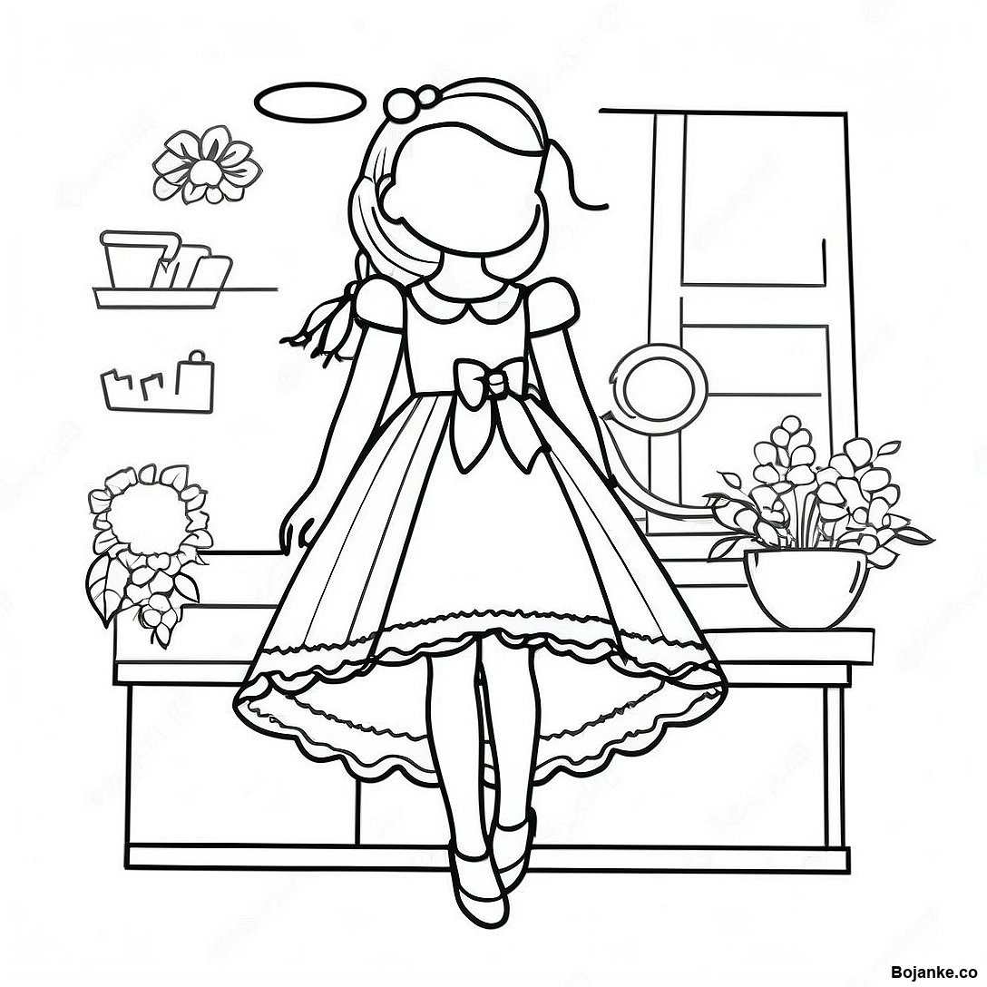 Stilizovana Lepa Devojka U Haljini Bojanka