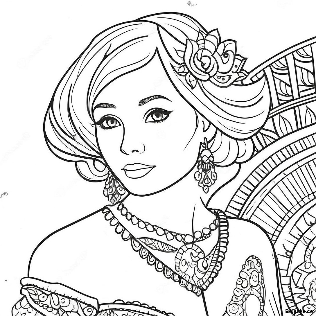 Stranica Za Bojanje Prelepe Devojke U Haljini