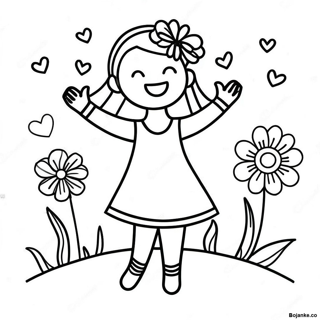Vesela Devojčica Sa Cvećem Koja Pleše - Bojanka