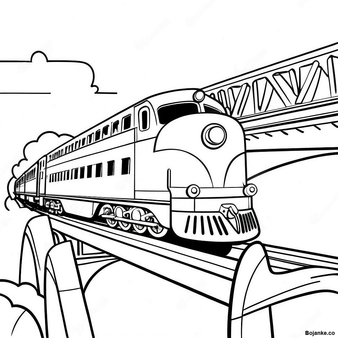 Preuzmi verziju za štampu Vintage Stranica Za Bojanje Voza Na Mostu u PDF formatu