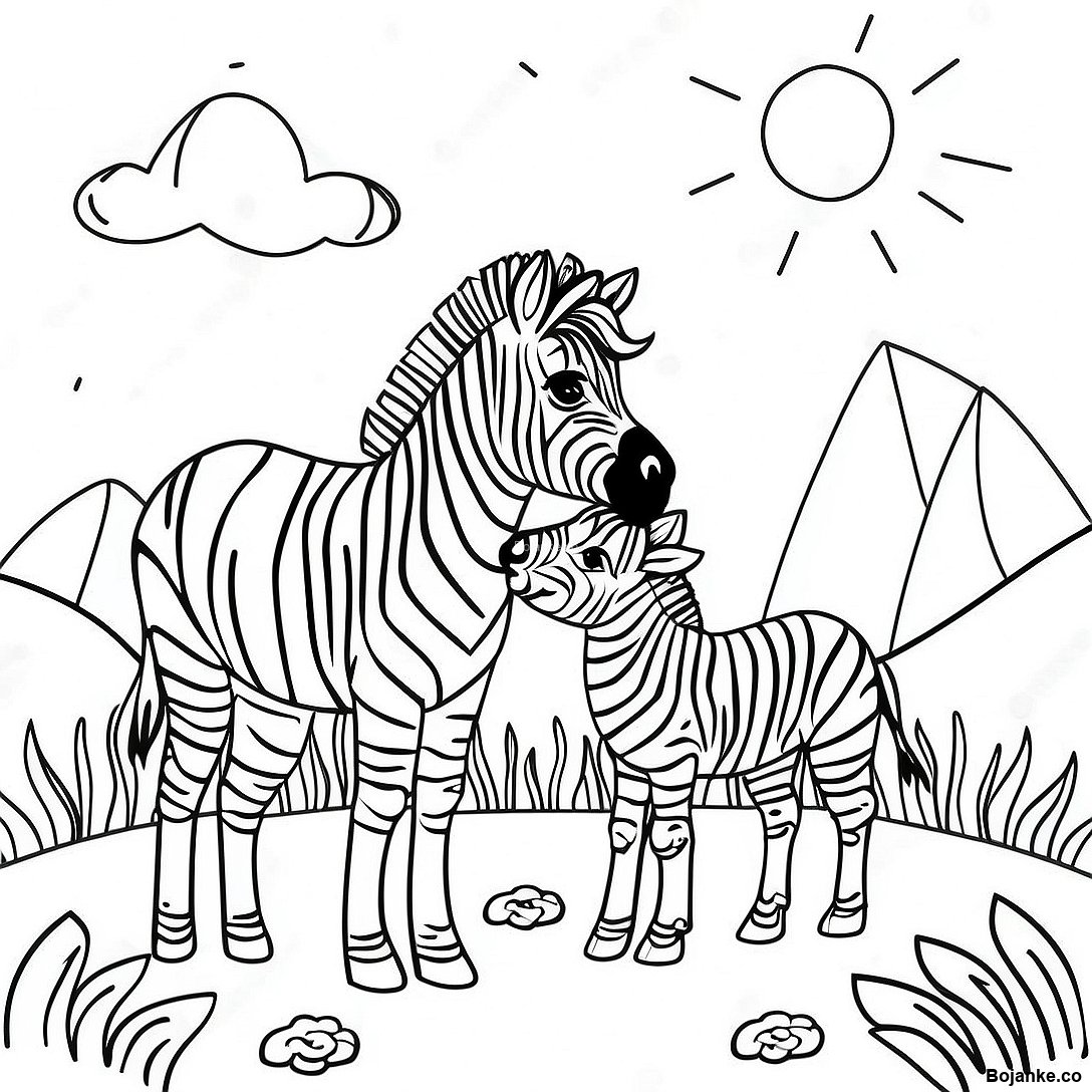 Zebra Porodica U Livadi - Bojanka